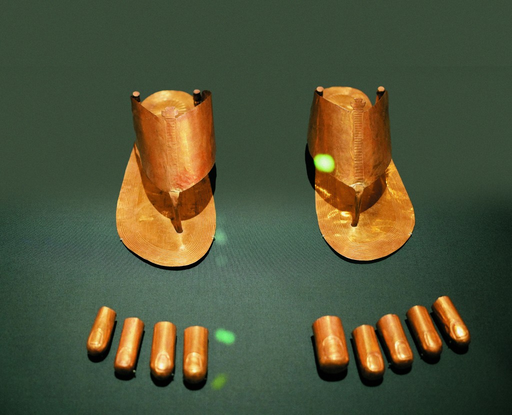 Gold sandals and toe stalls from ancient Egypt