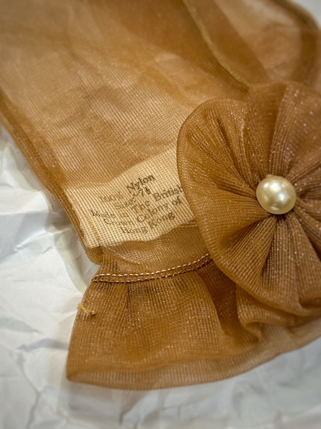 A pair of fashion gloves with the label Made in British Crown Colony of Hong Kong
