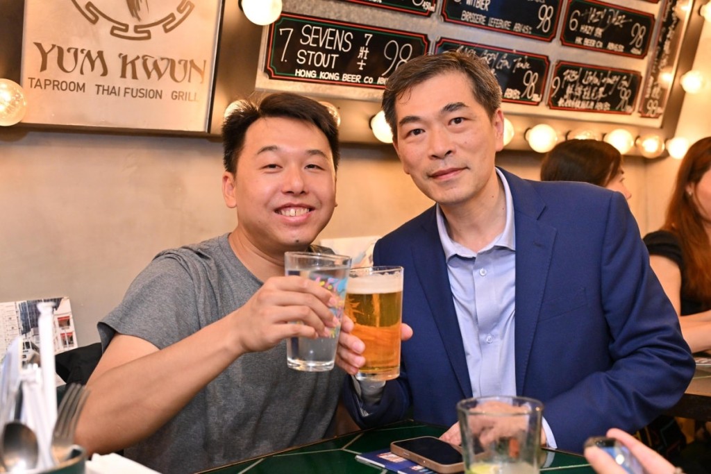 Ricky, Wong Kwong-yiu (Right) drinks with visitors after the DiscoverWanChai walking tour. Wheelock