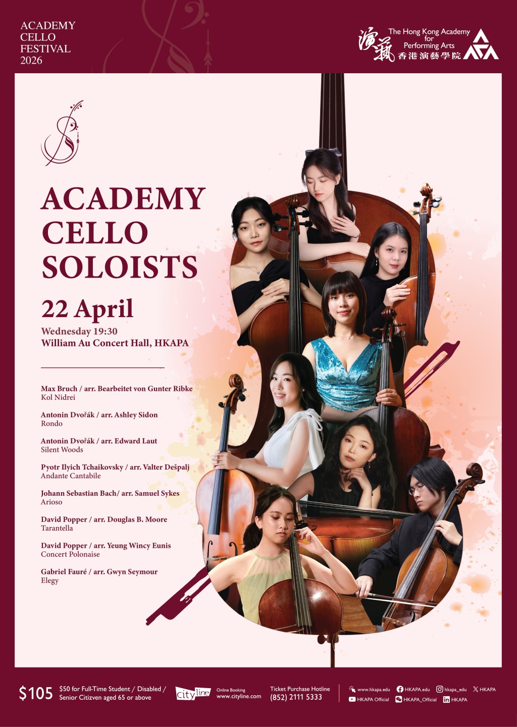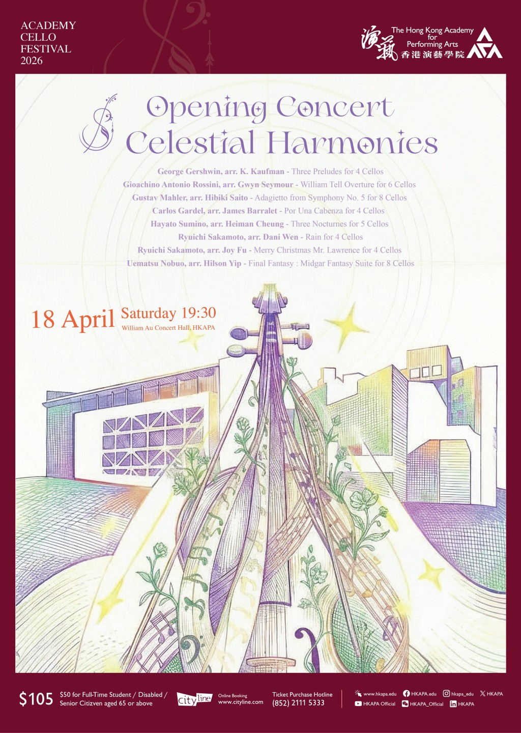 Running from April 18 to 24 at the William Au Concert Hall, the festival will feature six concerts that bring together students, alumni and international guest artists, offering audiences a chance to experience the expressive depth of the cello across generations and styles.