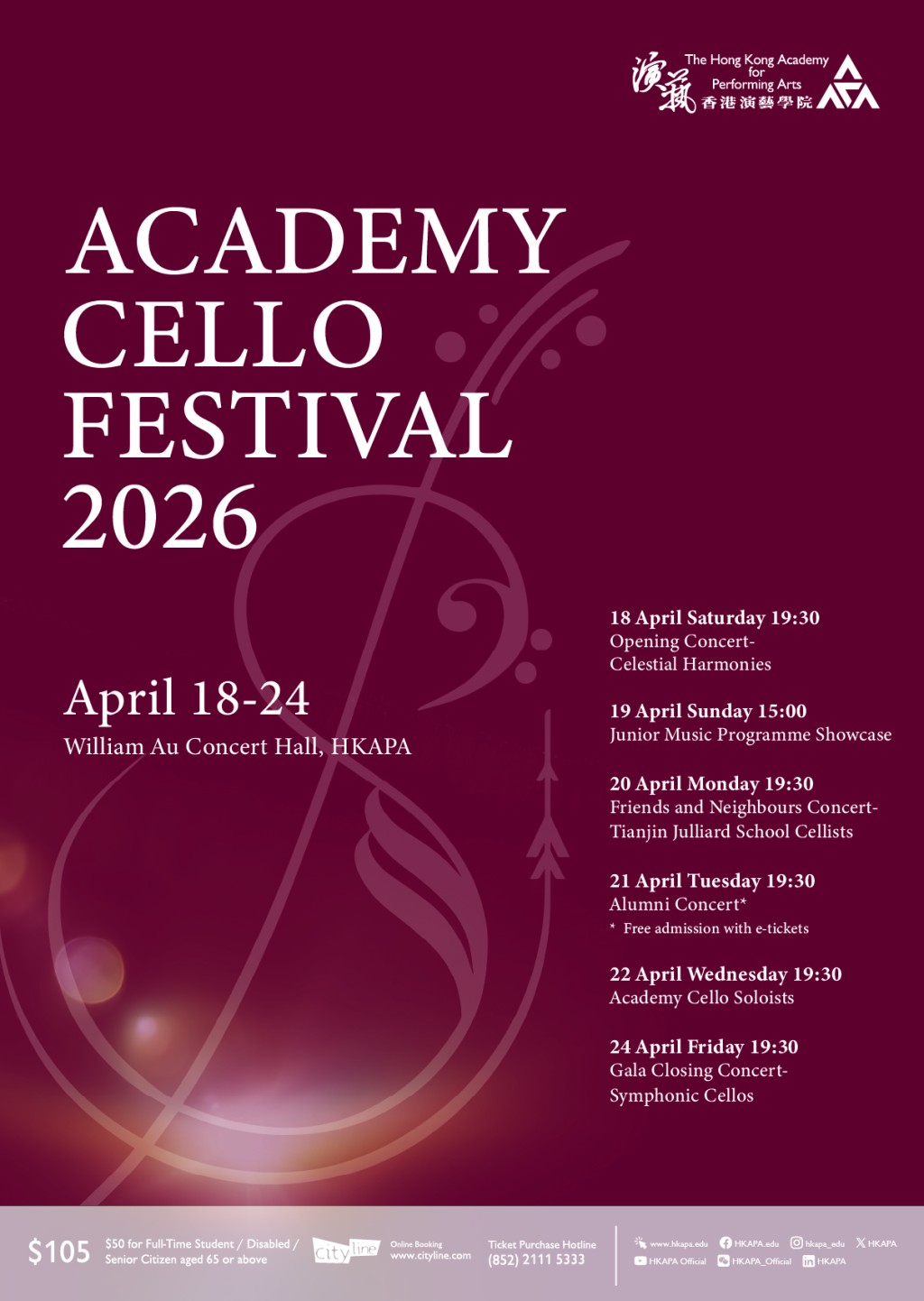 A week of rich, resonant cello music is set to fill the halls of The Hong Kong Academy for Performing Arts this April, as the Academy Cello Festival 2026 returns — with a special ticket giveaway for readers who stay tuned until the end.