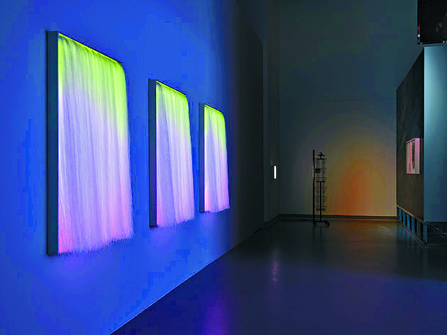 Other artists focus on the disappearance of natural landscape brought about by industrialization. Tap Chan’s Three Riddles (Apparitions) is an installation of windows made of colorful LED light boxes with nylon curtains. “This is a response to the urban environment, where the LED lights symbolize the fl ashy neon signs and the fl owing curtains represent a sense of dreamy feeling,” she said.
