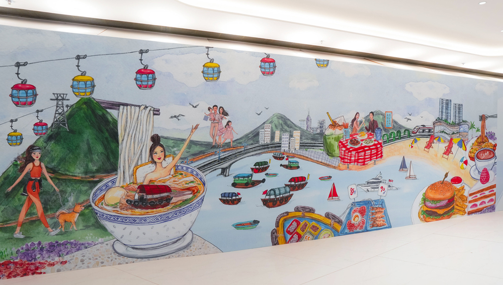 One of the local artists is Kitty Wong, a talented illustrator who studied fashion design in Canada. In her painting, Kitty melds her cartoon girl characters with the authentic sights and sounds of Hong Kong to create a vibrant artwork that captivates the gaze of passersby. Her artwork vividly depicts her cartoon characters meandering through the city streets and alleyways, exploring the intriguing and unique aspects of Island South.
