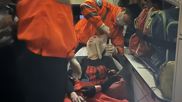 Rescuers put a face mask on Yeung’s face for treatment and sent her to the hospital.