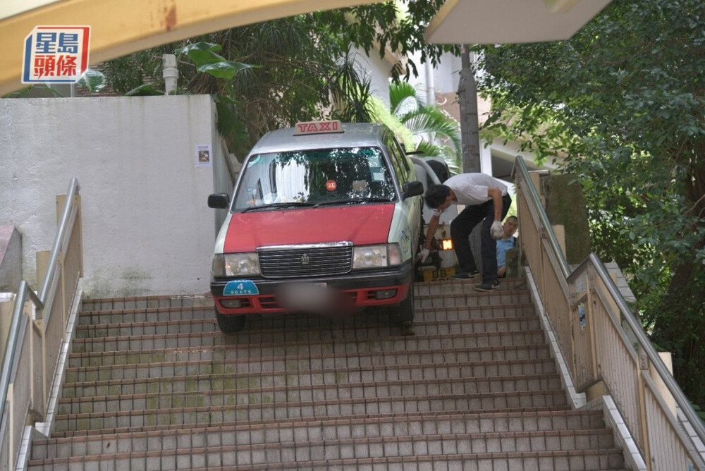 Police were alerted of a traffic accident on Monday which saw a 72-year-old taxi driver just a few inches away from driving his vehicle down a staircase in Mid-Levels after making a wrong turn.