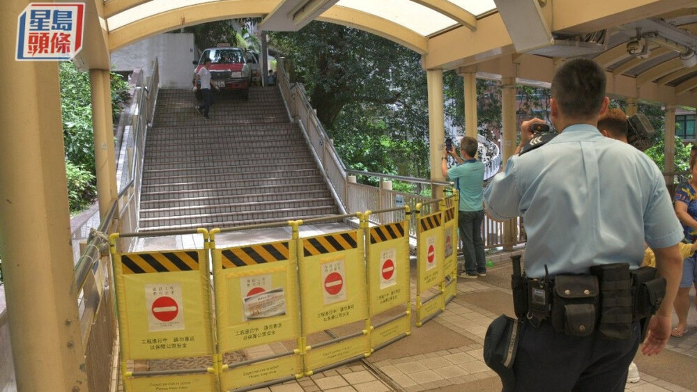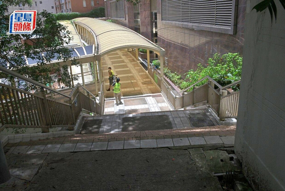 Without realizing he went the wrong way, he drove along the pavement and slammed the brakes just in time - inches away from plunging down a staircase that connects the estate to the Central to Mid-Levels Escalator.