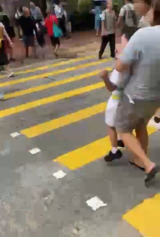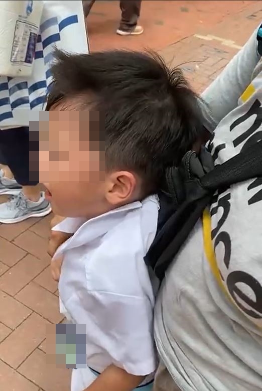 The incident happened outside Exit A of the Tin Hau MTR Station on Tuesday. The schoolboy was said to be refusing to cross the road, which led to the female domestic helper lifting him up by putting her left arm around the boy's neck.