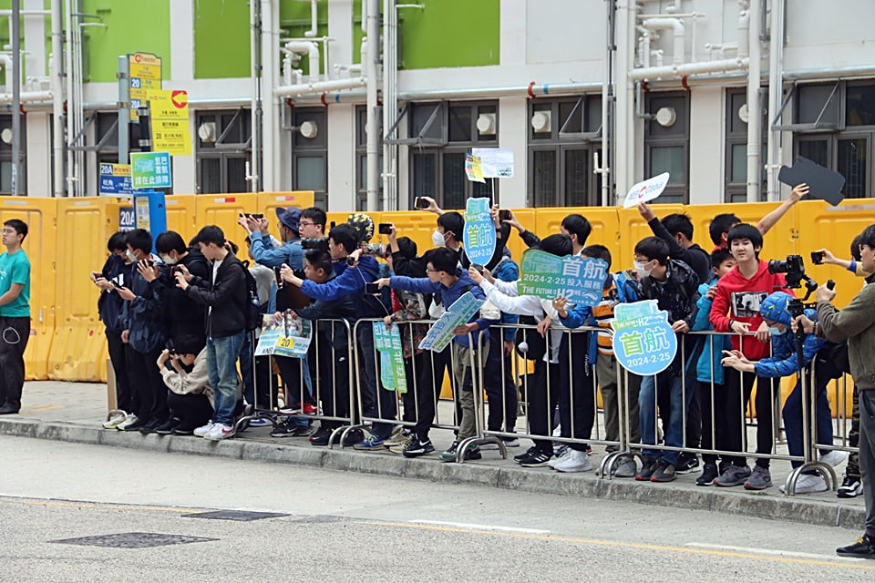 The first hydrogen bus in Hong Kong, operated by Citybus, hit the road on Sunday and was welcomed by a group of bus enthusiasts.