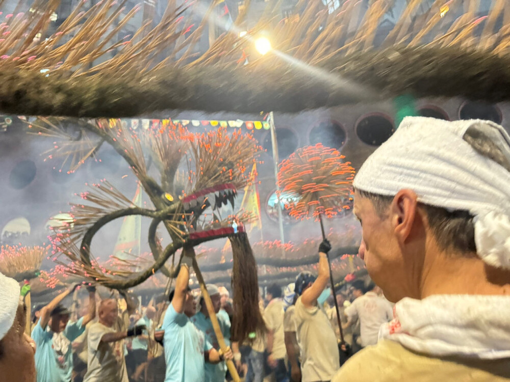 The ceremony starts with decorating the dragon and stuffing it with burning incense sticks before parading it through the streets of Tai Hang.