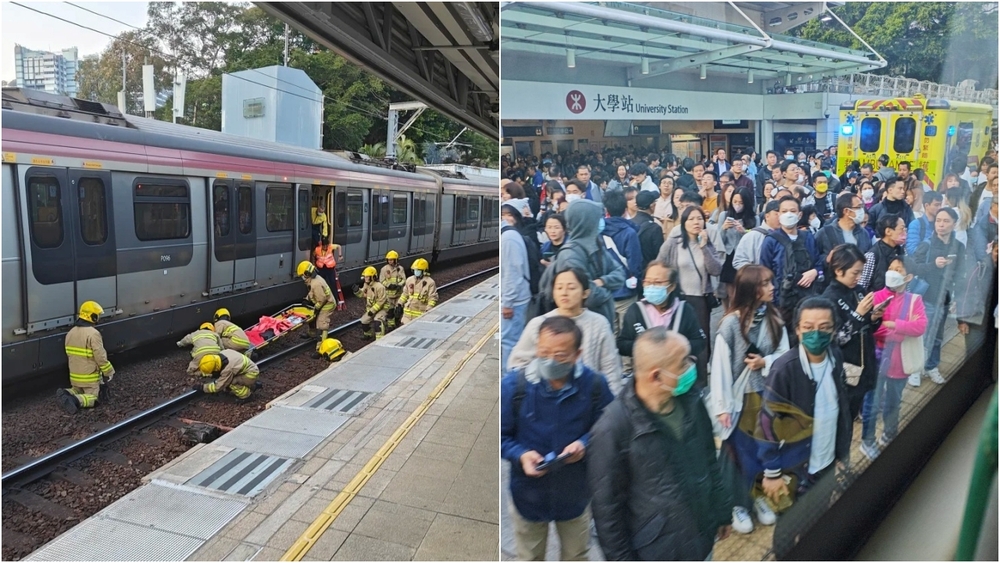 Police reported that they received a report from MTR staff shortly before 5 pm today, indicating that a woman had fallen onto the tracks at University Station and trapped under a Lo Wu-bound train.