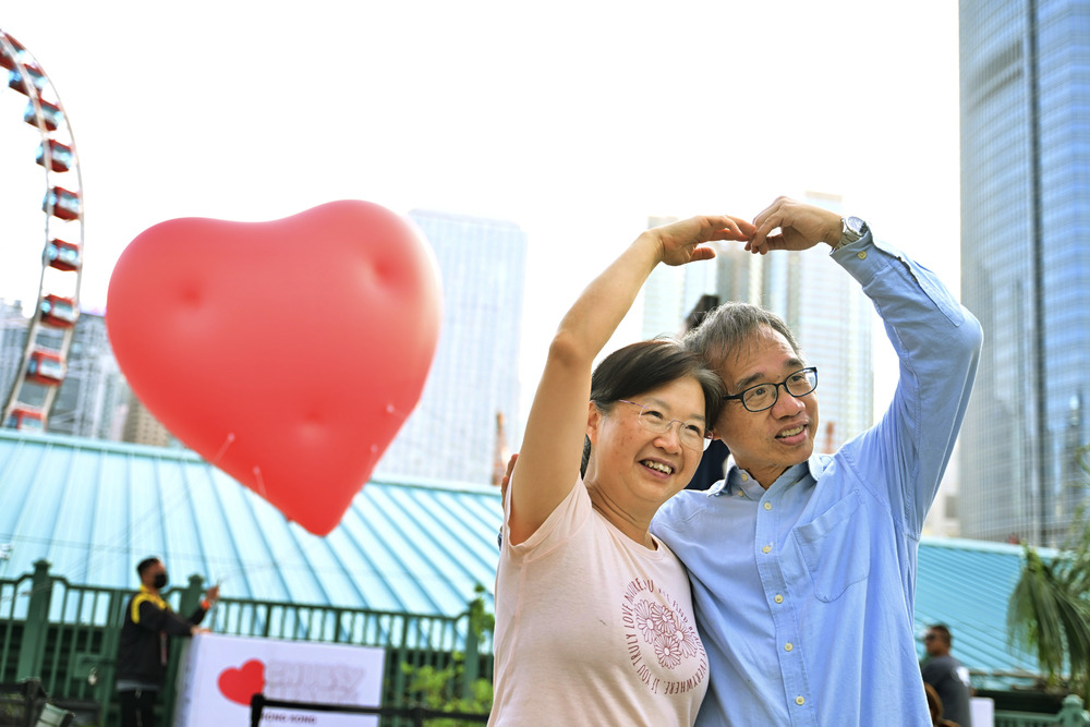 Another bigger floating red heart 12 meters in diameter has been on display at Central's Statue Square since Wednesday and will be there until February 24.