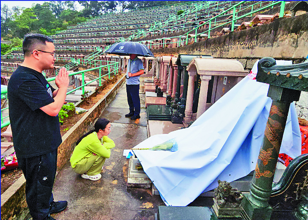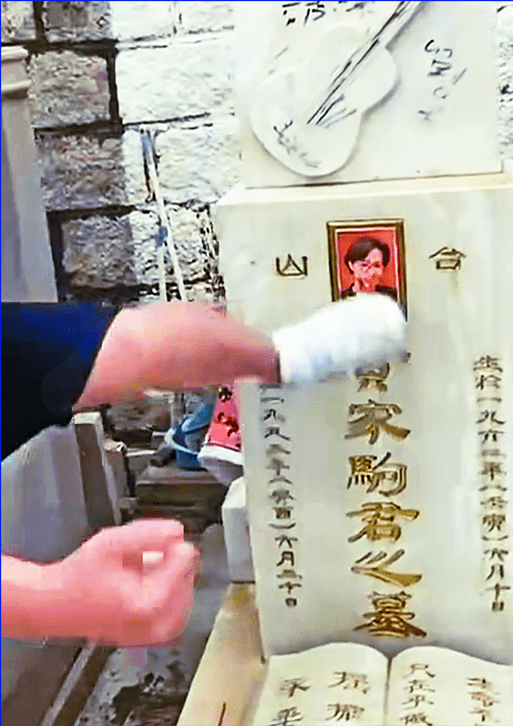 A tourist, Su, who came from Sichuan to pray for Wong, could not hold back her tears as she saw the tarp over the gravestone.