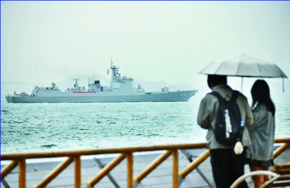 Locals and mainland tourists ignored the dreary weather to happily welcome two People's Liberation Army battleships - the Hainan amphibious assault ship and the Changsha missile destroyer.