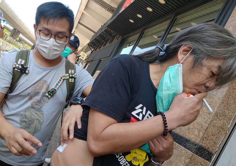 The assailant was arrested by police. Photos: Leung Kwok Hung's Facebook page.
