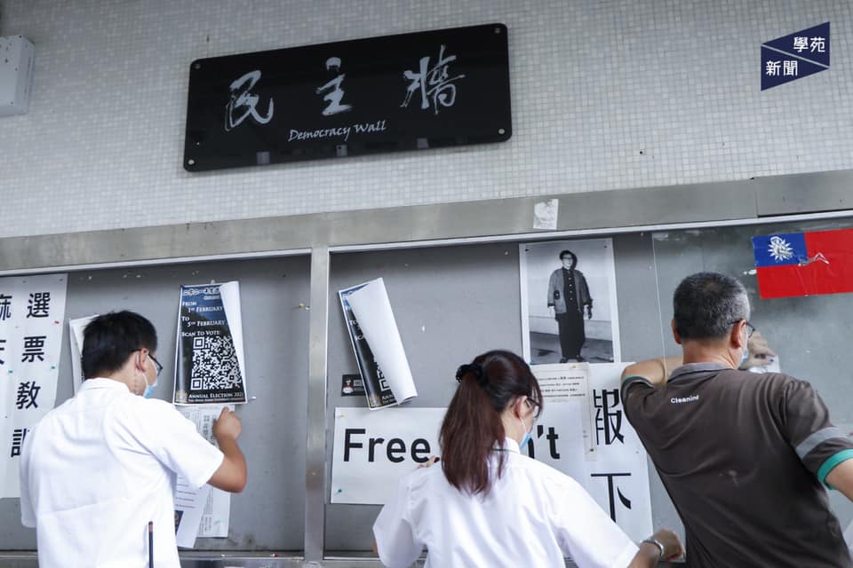 The student publications reported that around 20 security guards and staff of the university's estates office removed all posters and banners on the democracy wall and at the students' union building, as well as other students' union's notice boards outside the Knowles Building and in the lobby of Leung Kau Kui Building.