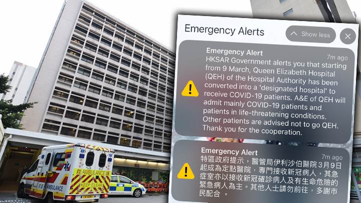 Hongkongers were shocked when they received an "emergency" alert on their mobile phones simultaneously on Wednesday, which in fact was a reminder for them not to head to Queen Elizabeth Hospital.