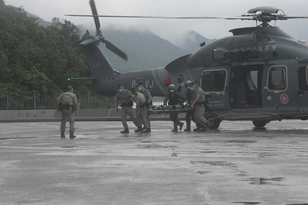 Police, firemen and Government Flying Service helicopters were deployed as Fire Services Department divers scoured the gully's lower stream.