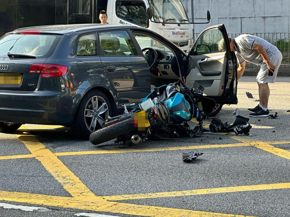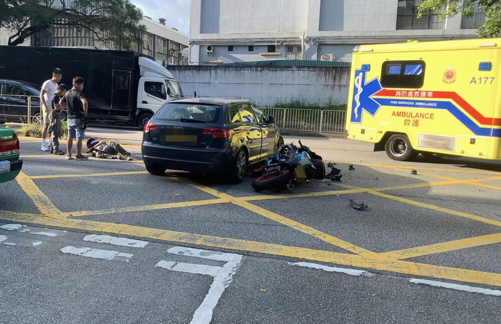 The 31-year-old male motorcyclist, surnamed Lam, was riding on Ting Kok Road at around 7.30am when he hit a sedan suddenly turning right from Ting Hing Road without noticing the motorbike was nears.