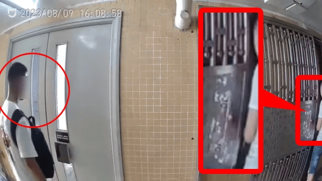 The neighbor, whose doorbell camera caught the act on tape, posted the videos on Facebook yesterday night. According to the post, the attempted burglary happened at around 3.52 pm yesterday at a residential building of Yat Nga Court in Tai Po.