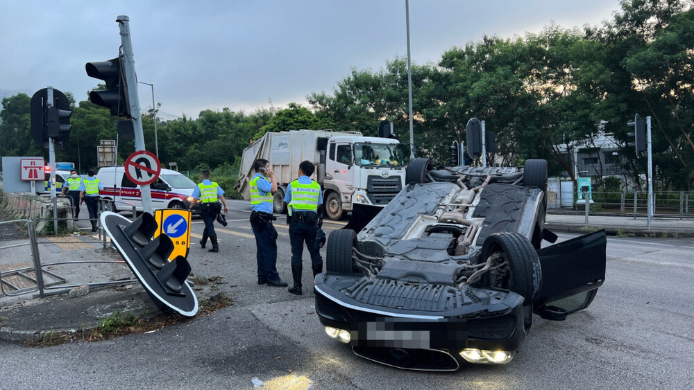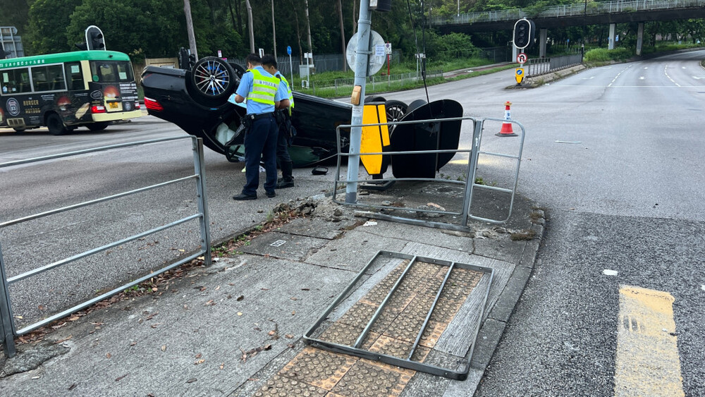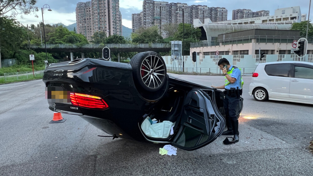 The first case happened in Tai Po at around 6 am, a driver lost control of his Mercedes-Benz sedan going down the slope on Tai Po Tai Wo Road when turning right to enter Po Nga Road.