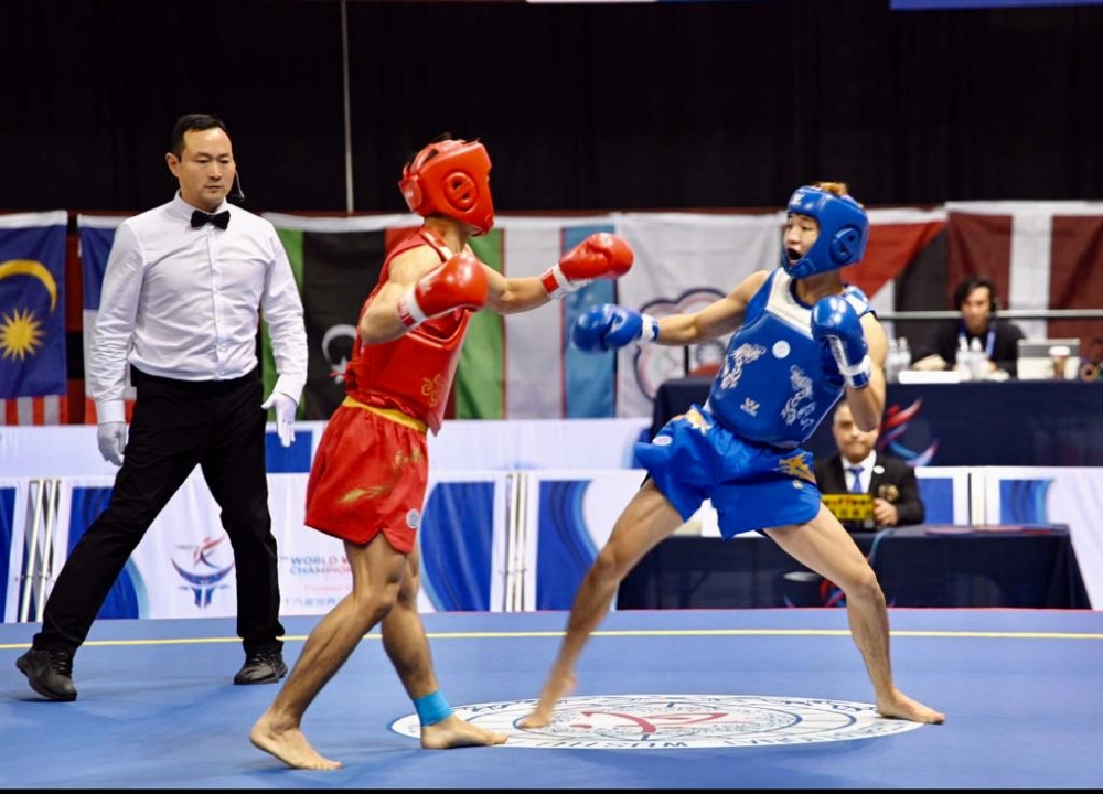 On the final day of the 2023 World Wushu Championships held in Texas yesterday (Nov 20), the Hong Kong Sanda representative faced off against a Vietnamese rival Nguyen Man Cuoug at the 60kg men's Sanda final.