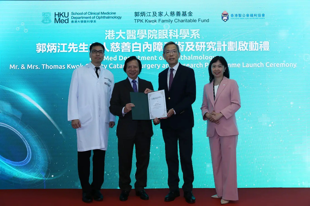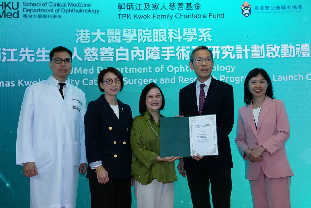 The HKUMed Department of Ophthalmology announced yesterday (Nov 29) that they had received HK$10 million in funding from the TPK Kwok Family Charitable Fund and launched the Mr. & Mrs. Thomas Kwok Charity Cataract Surgery and Research Programme.