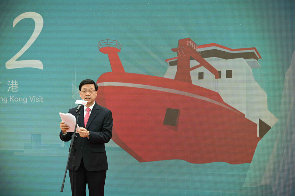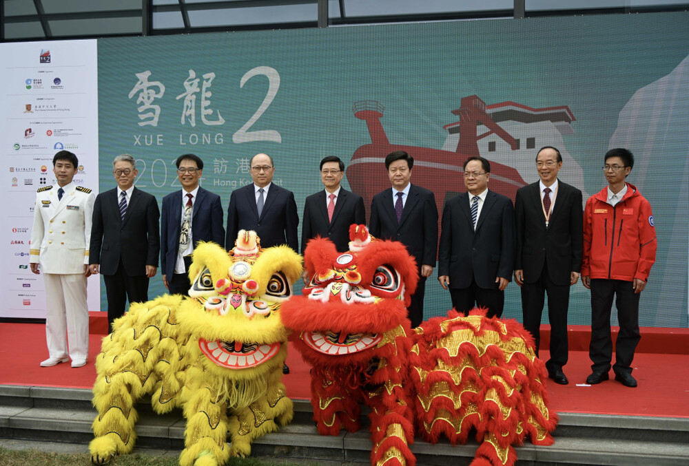 Chief Executive John Lee Ka-chiu and Zheng Yanxiong, director of the central government’s liaison office in Hong Kong, welcomed the ship’s 30-strong delegation this morning which included Zhang Beichen, the team leader and chief scientist of China’s 40th Antarctic expedition, and captain Xiao Zhimin.