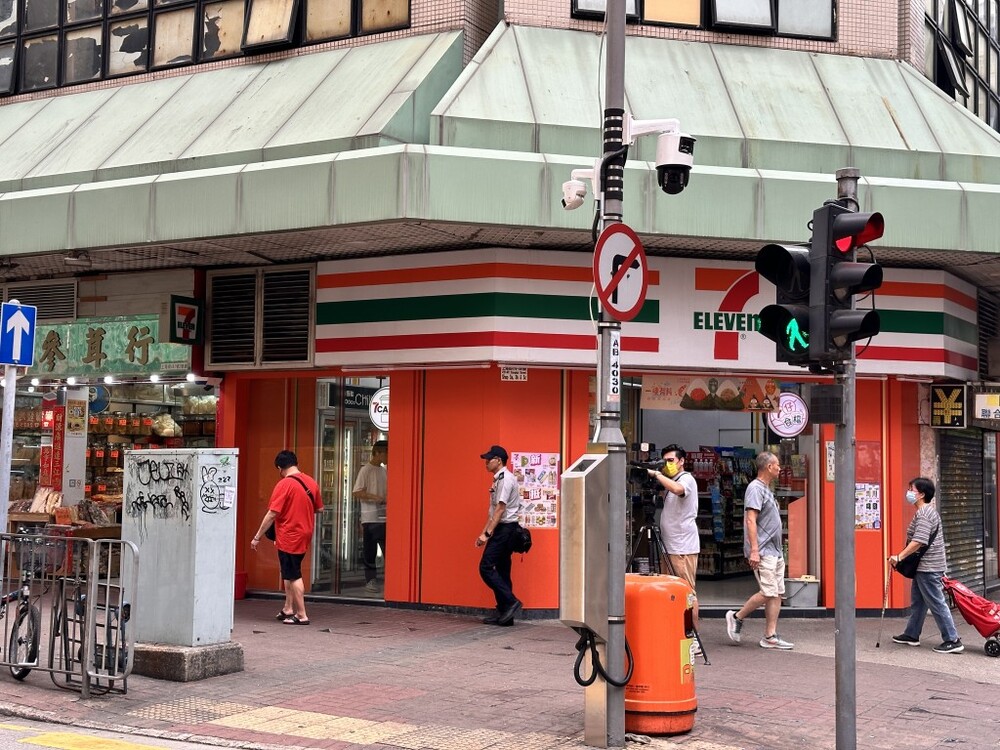 One of the surveillance cameras was installed at the junction of Soy Street and Shanghai Street. It was mounted on a lamppost next to a traffic light, with a label indicating that CCTV operations were underway.