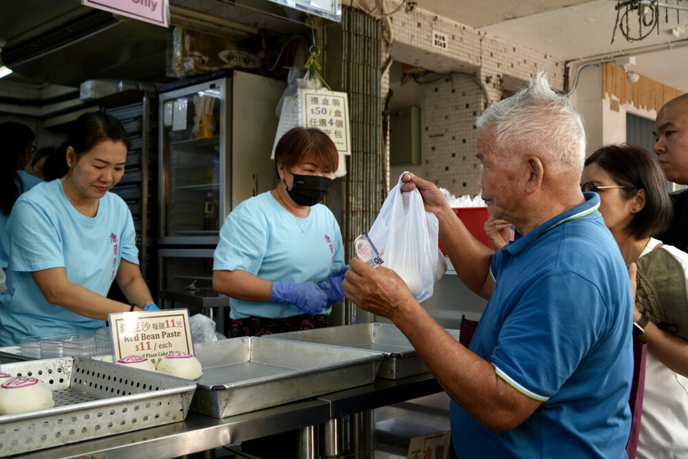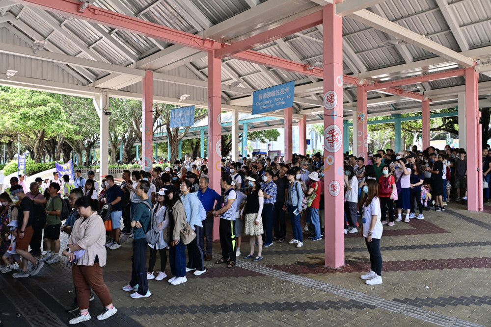 As the Cheung Chau Bun Festival takes place, many citizens arrived on the island in the morning to immerse themselves in the festival. Outside a bun shop, a long queue formed with eager customers.