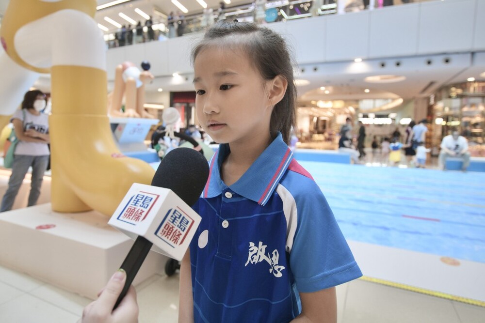 A young girl surnamed Yiu was in table tennis attire and stated that she loved playing table tennis and had been playing the sport for a year, hoping to become a professional table tennis player and win honors for Hong Kong.