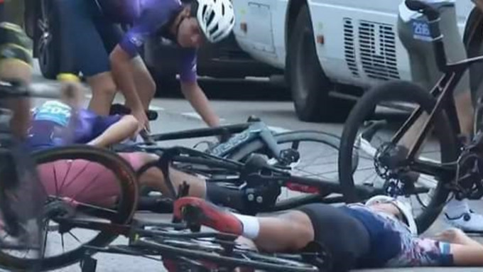 One of the accidents happened when a cyclist lost control and crashed into the first aid post during the race, triggering a series of collisions involving more than ten bikes. One participant with a shoulder injury was carried off the track on a stretcher.
