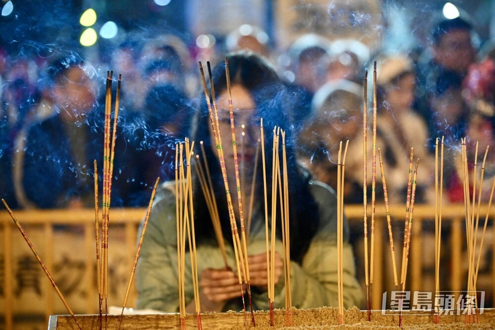 A large number of residents, some dressed in snake-themed costumes, lined up at the Wong Tai Sin Temple on Tuesday night for the first incense ritual.