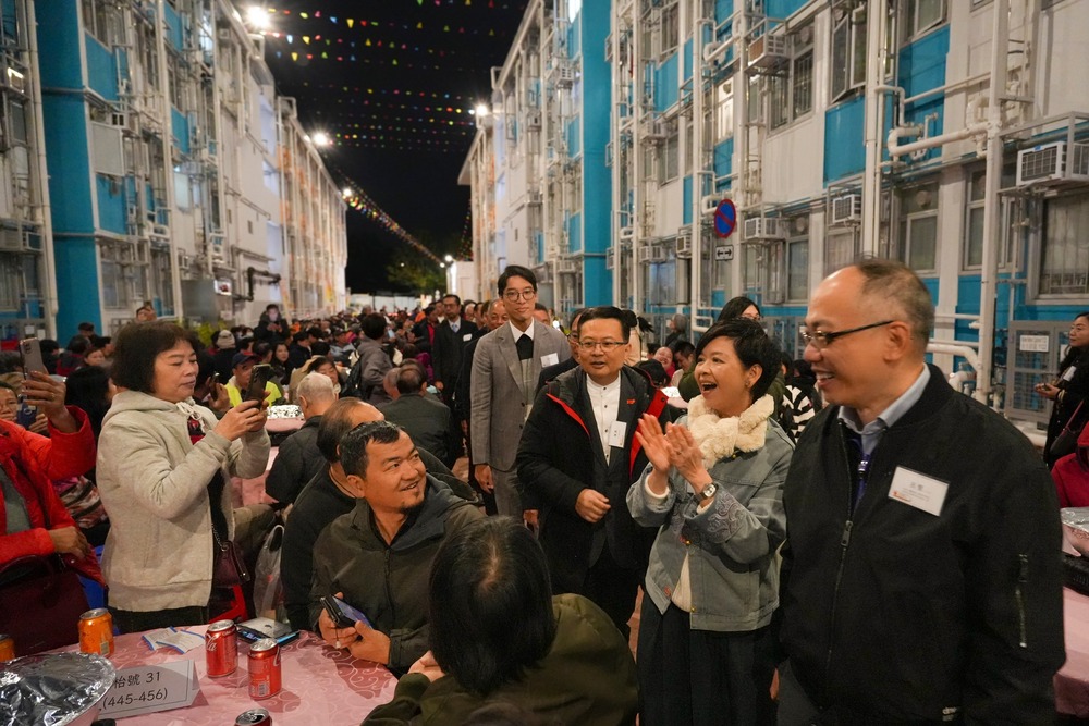 Accompanied by Undersecretary for Housing Victor Tai Sheung-shing, Ho attended a daytime carnival with game booths, magic performances and face-changing shows, which were thrown open to residents in the vicinity.