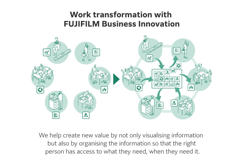 The Asia-Pacific workforce holds a diversity of values, arising from varied levels of information literacy and information handling skills, as well as individual work ethics. This is why changing the work culture for every worker in this vast region can drive the growth of global business. Since its days as Fuji Xerox, FUJIFILM Business Innovation has supported corporate reform by maximising the value of information and implementing smooth communication. So, how will digital transformation revolutionise the handling of information and the role of workers?