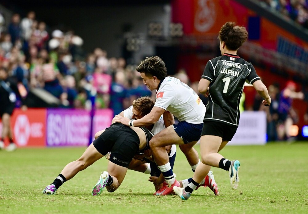 The Hong Kong men's rugby sevens team, defending champions of the Melrose Claymores, continued their winning streak by defeating Japan 43:21 at Kai Tak Stadium. This victory in their second match secured their spot in the finals with an unbeaten record.