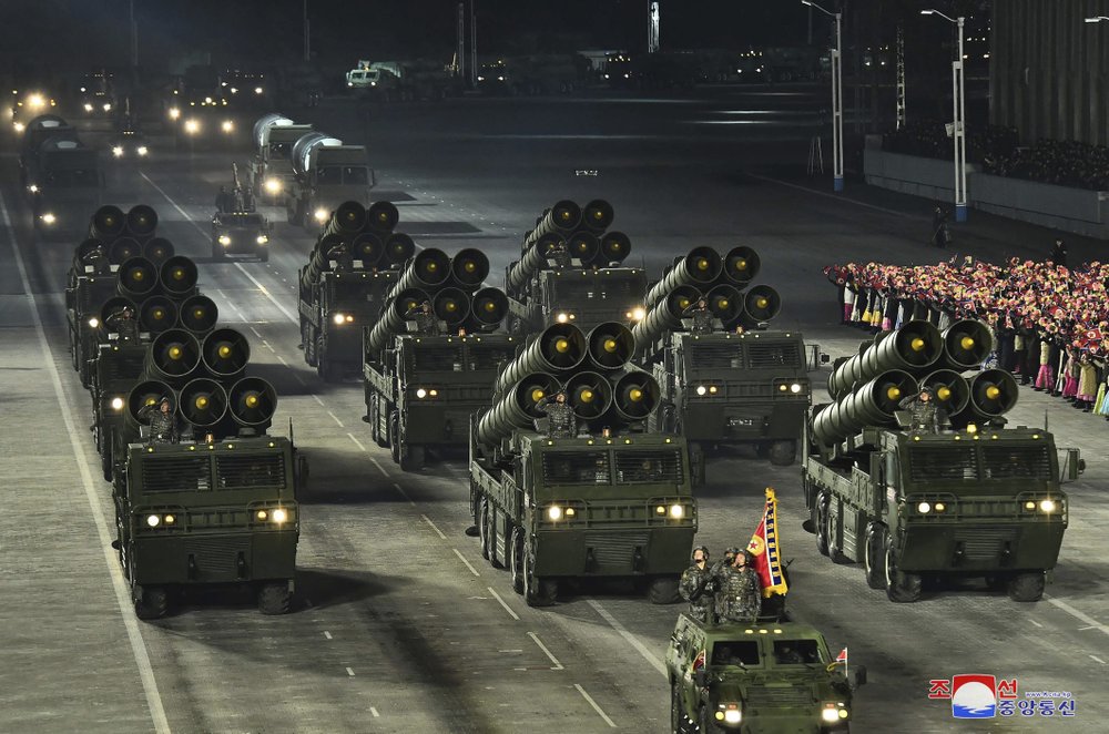 The North also displayed a variety of solid-fuel weapons designed to be fired from mobile land launchers, which potentially expands the North’s capabilities to strike targets in South Korea and Japan, including U.S. military bases there.