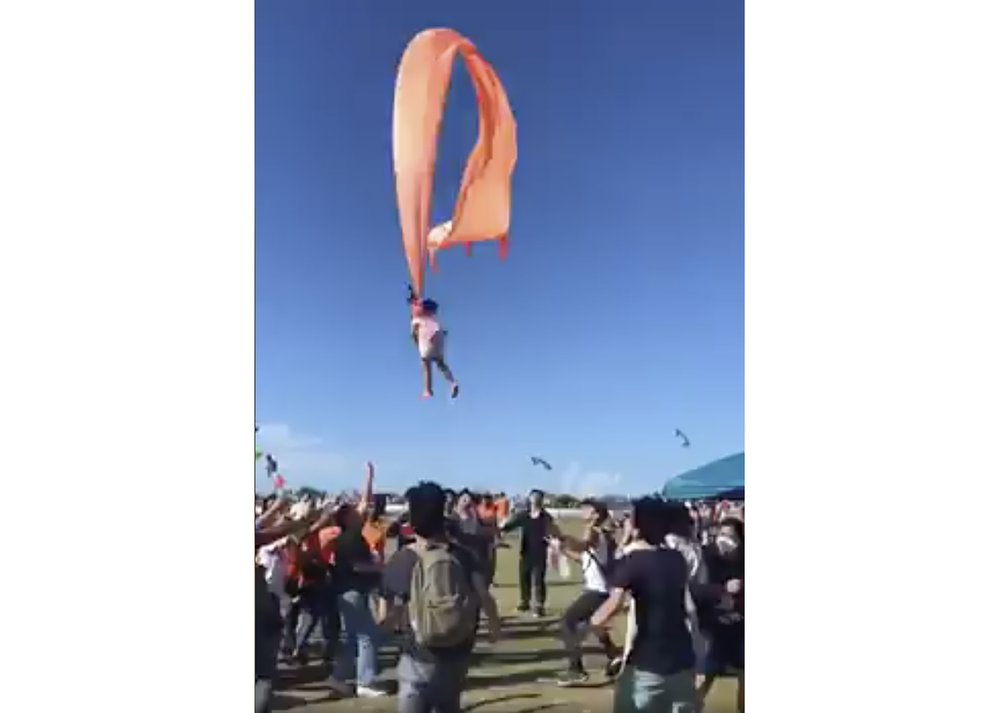 Three-year-old girl tangled in kite lifts off at Taiwan fest