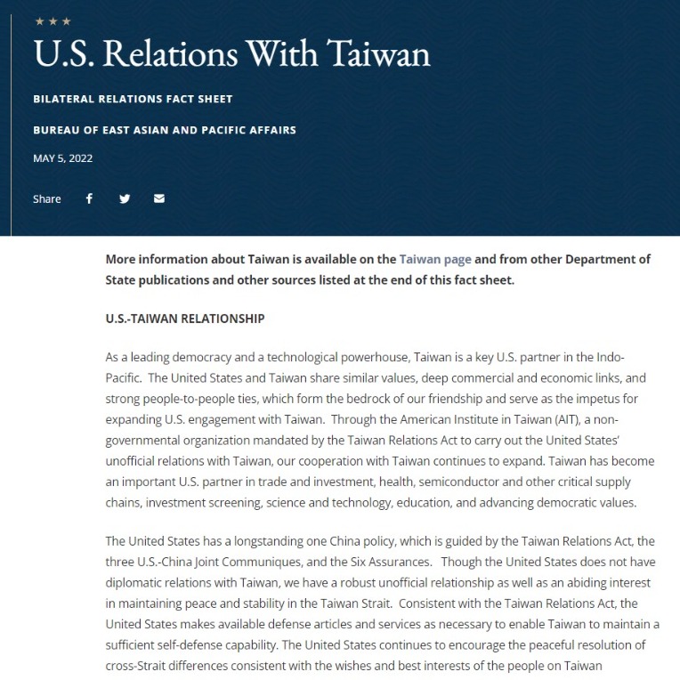 U.S govt website removes 'does not support independence' statement from Taiwan fact sheet