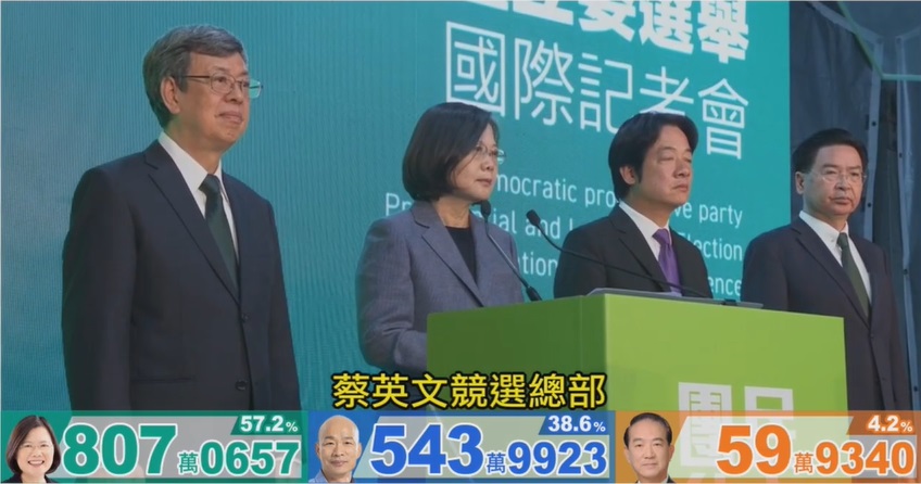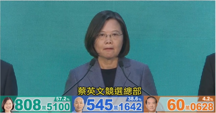 Tsai Ing-wen of DDP has successfully won a second term in Taiwan's presidential election. Screenshots from Chung T'ien Television