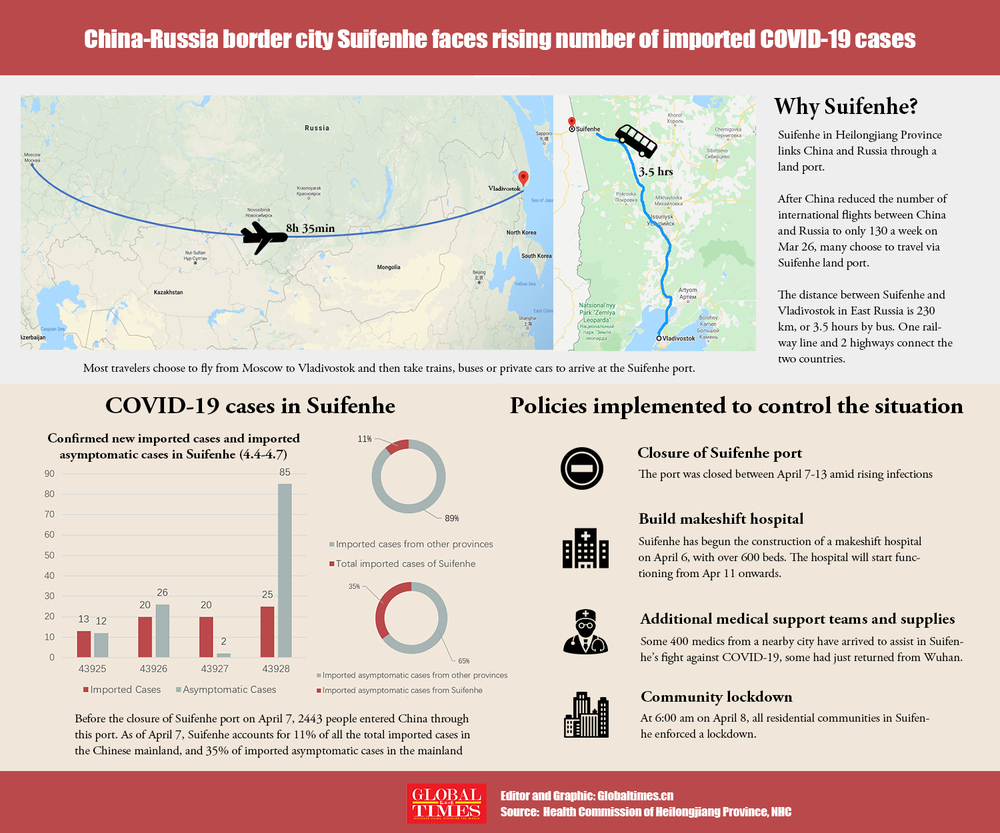 As Wuhan, the epicenter of coronavirus outbreak, reopened after a 76-day lockdown, small border towns in China's northern and northeastern regions closed on April 7 due to an influx of infected travelers crossing borders from Russia.