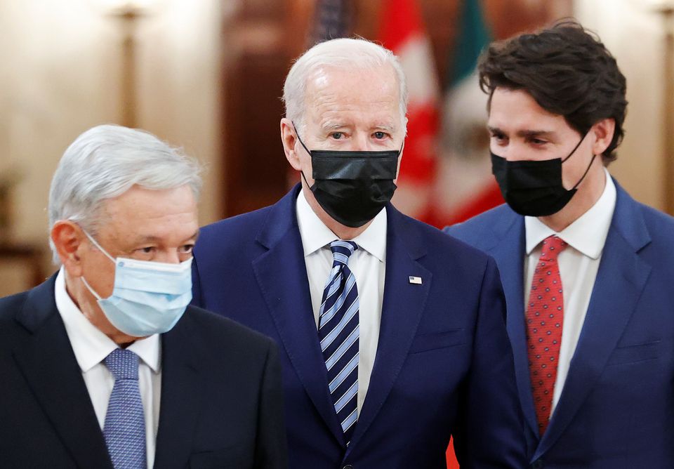 U.S. President Joe Biden, Canada's Prime Minister Justin Trudeau, and Mexico's President Andres Manuel Lopez Obrador. (Reuters)