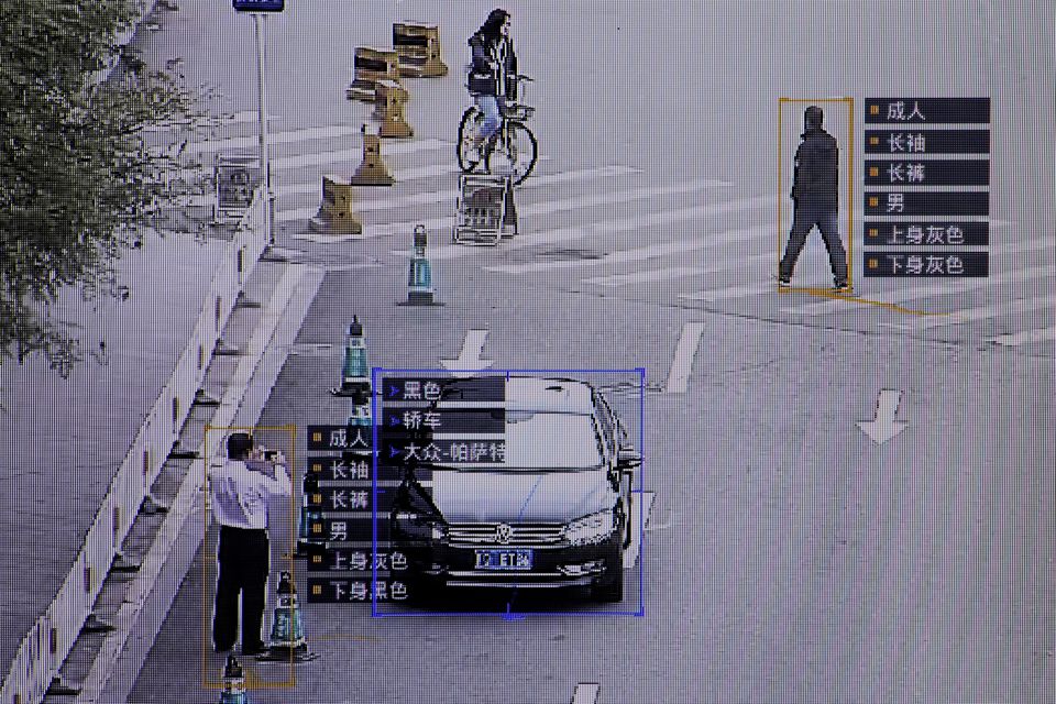 SenseTime surveillance software, which identifies details about people and vehicles, runs during a demonstration at the company's office in Beijing, China. (Reuters)