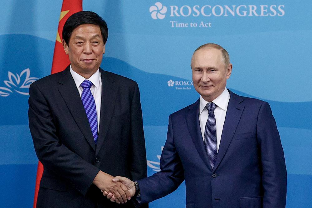 Chinese state media say the country’s top legislator decried sanctions against Russia during a recent visit to the country, underscoring China's backing of Moscow in its war on Ukraine despite claims of neutrality.