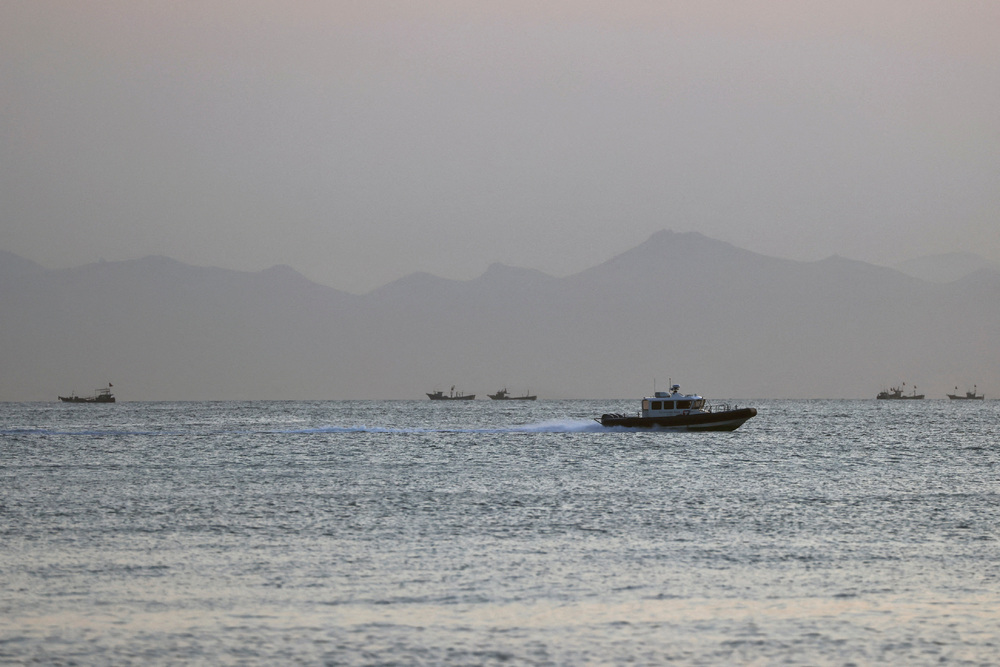 A Taiwan Coast Guard ship travels past the coast of China, in the waters off Nangan island of Matsu archipelago in Taiwan. (Reuters)