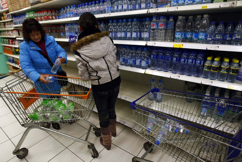 Residents buy bottled water at a supermarket in the Songjiang District of Shanghai, east China, 2009. (Reuters)