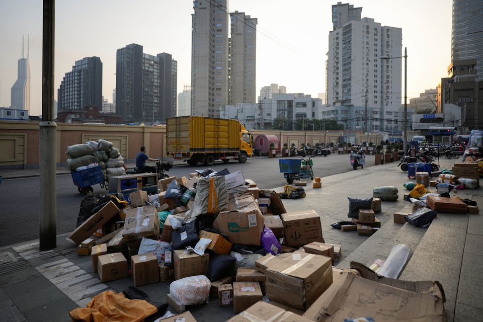 Parcels are seen at a makeshift logistics station ahead of Alibaba's Singles' Day shopping festival. (Reuters)