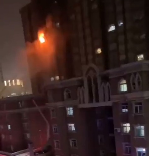 Flames spread upward from the point of origin on the 15th floor to the 17th floor, with smoke billowing up to the 21st floor, according to multiple state media reports. The blaze took around three hours to extinguish.