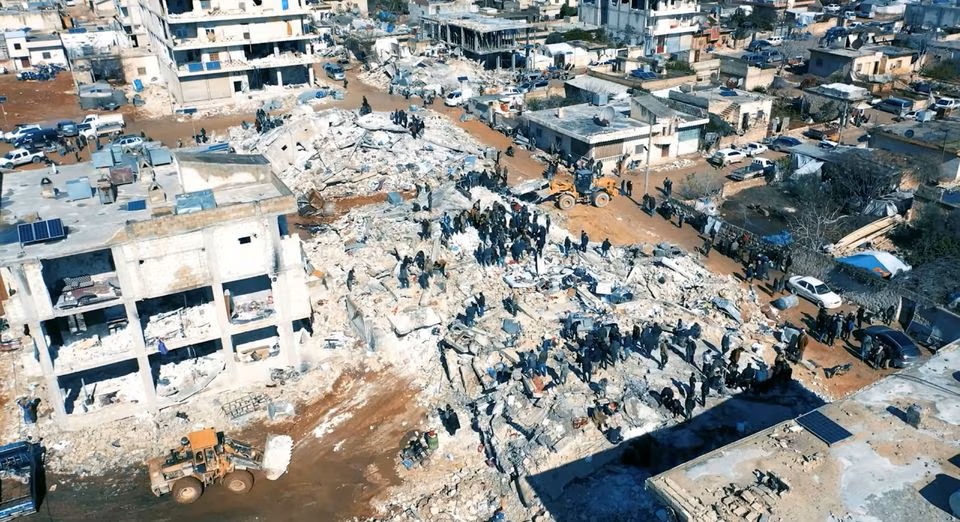 Damaged buildings and rescue operations are seen in the aftermath of the earthquake, in Aleppo, Syria. (Reuters)