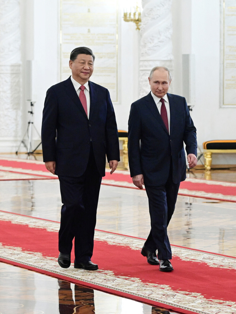Xi entered the Kremlin on a red carpet and was greeted by a military band and a delegation of senior Russian officials including Putin, as both nations seek allies to counteract Western power.