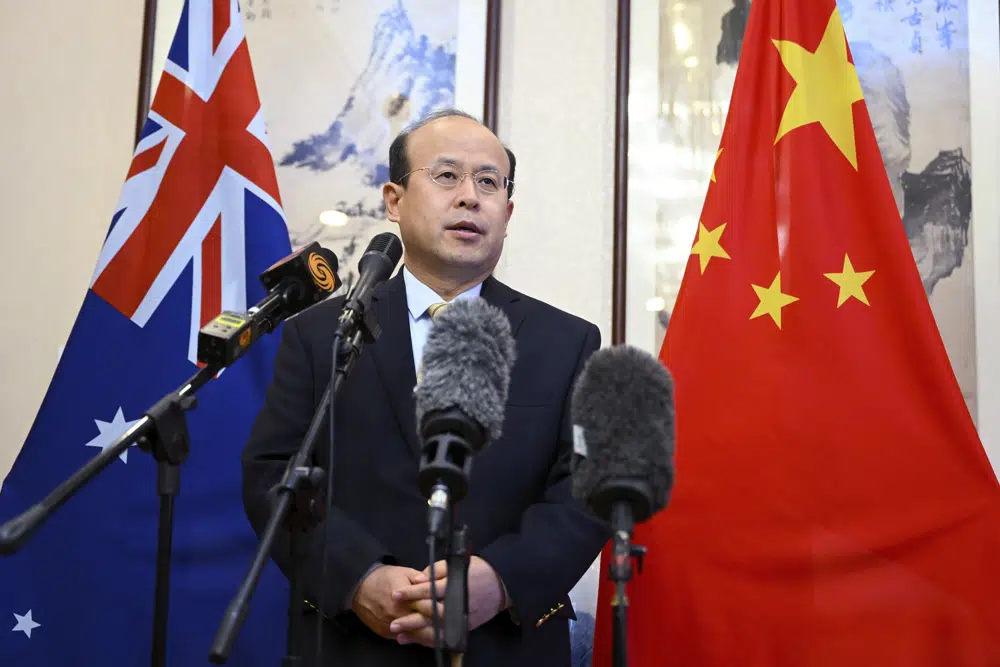 China's Ambassador to Australia Xiao Qian speaks to media at the Embassy of China in Canberra. (AP)